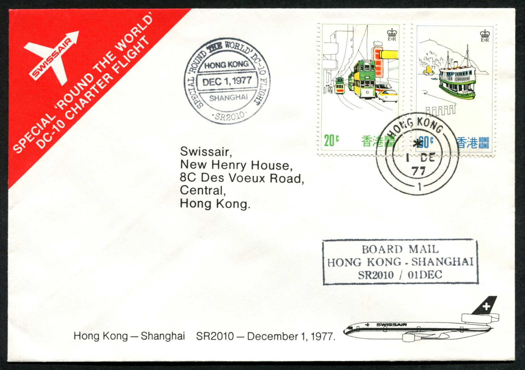 Gedenkblatt 19.5.1977 Hong Kong, 20 Jahre SWISSAIR Fernost-Flüge Pilot: R. Staubli